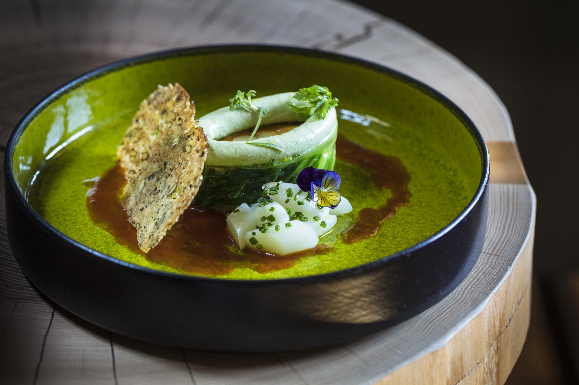 - Homard au charbon de bois, blette à la sarriette et homardine crémeuse