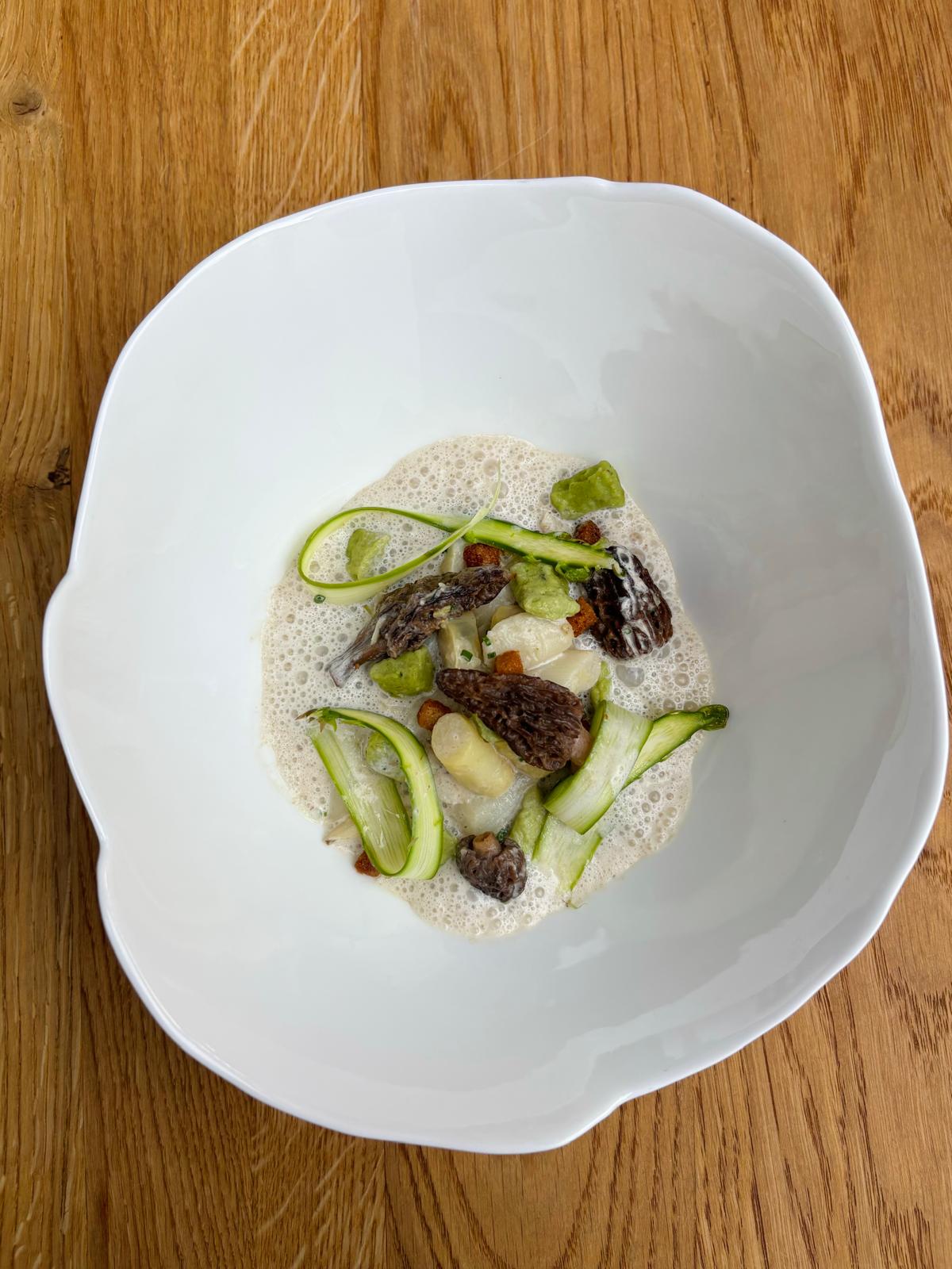 Fricassée d’Asperges aux Verpes de Bohême, Kaesknepfle à l’Ail des ours