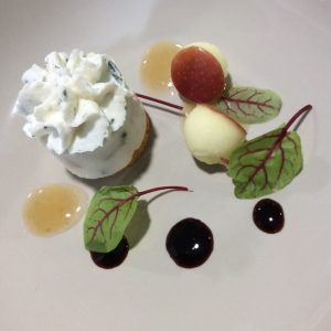 L'œuf coulant dans sa coque croustillante, concassée de tomates et mousse d'herbes, Faux Filet vintage , Roulé de Pommes/ quetsche, crème réglisse et tuiles